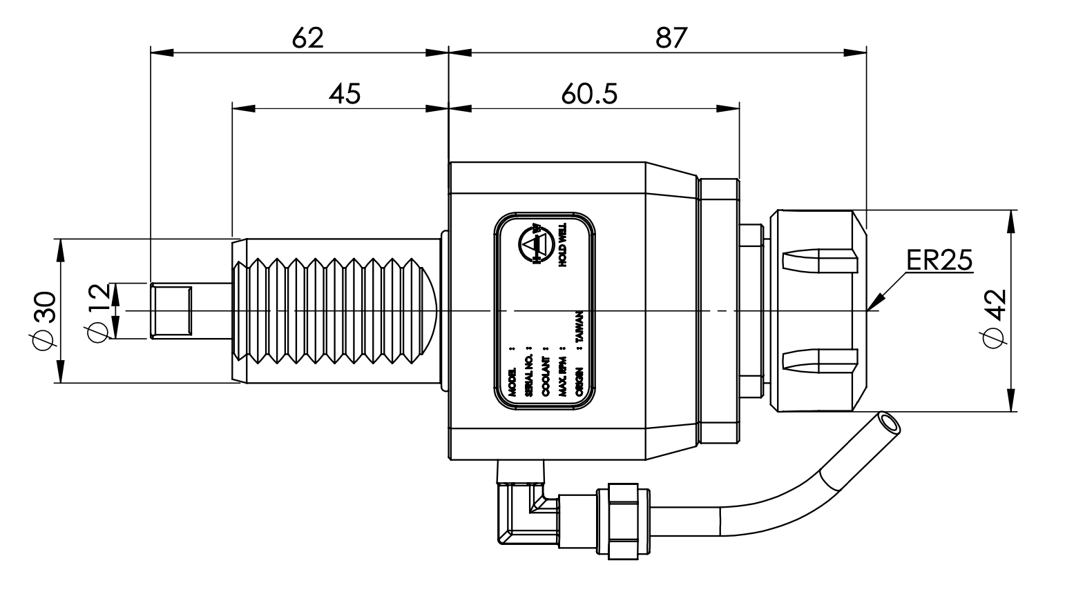 ◎VDI30-1809-ER25 Axial Driven Tool Holder◎Tool Holder is produced in accordance with DIN 69880.◎Driven Coupling is according to DIN 1809.◎ER Collet is according to DIN 6499.◎For left hand and right hand turret.